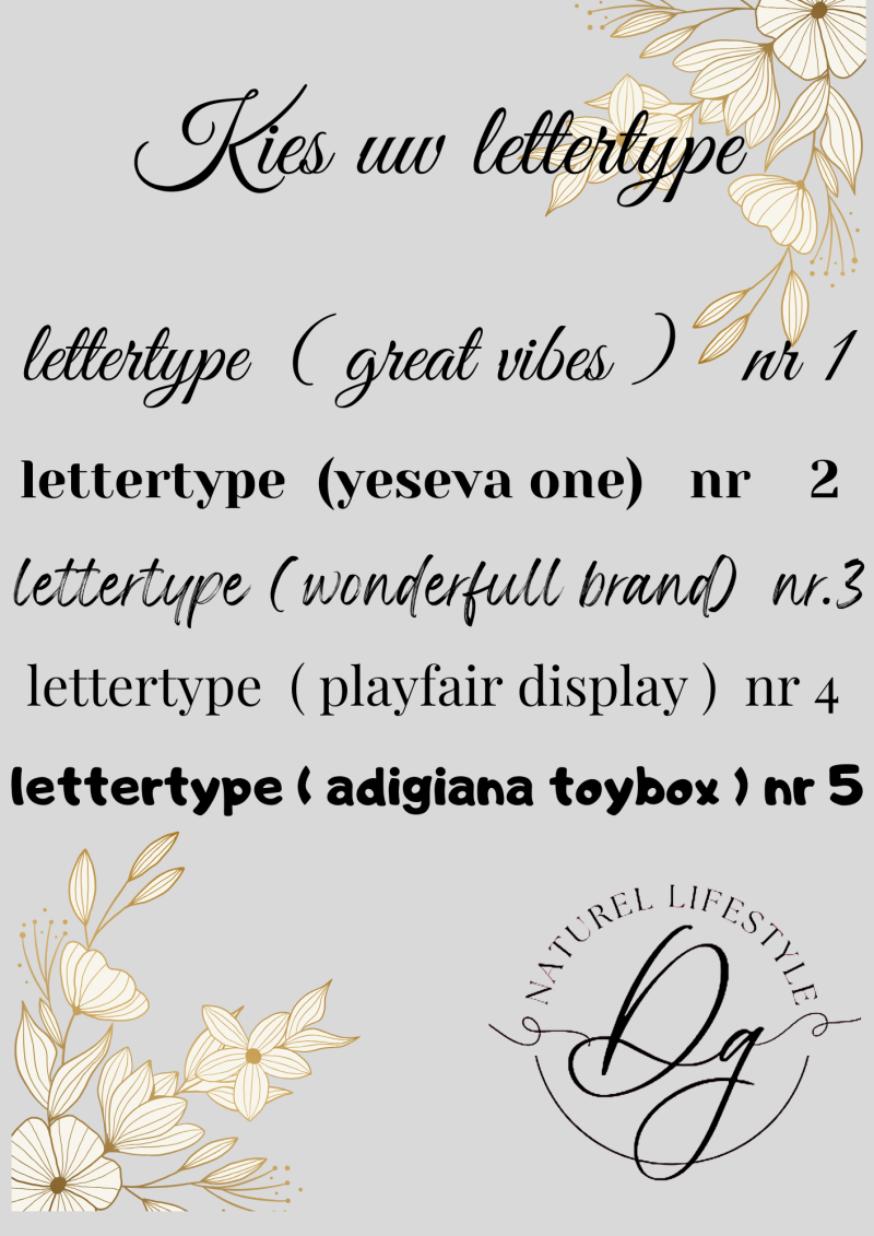 we stellen een 5 tal lettertypen voor om uit te kiezen