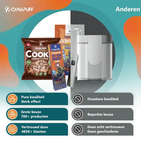 Ontdek een unieke wereld van ontspanning en natuurlijk genot met Canapuff! Wij zijn een merk dat zich met passie inzet voor het creëren van premium cannabisproducten voor een onvergetelijke ervaring. Onze Bloemen, Vaporizers, hashes en Gummies combineren topkwaliteit met innovatieve benaderingen om je te begeleiden op een reis van welzijn en plezier. Dompel jezelf onder in de wereld van Canapuff en ontdek hoe cannabis je dagelijks leven kan verrijken!