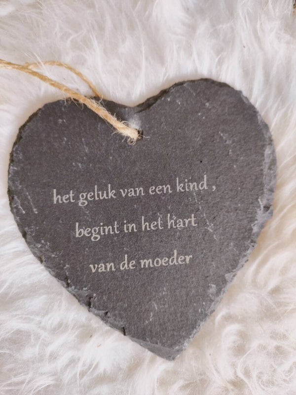 Hanger leisteen hart zwart B15 H 15*0.5 cm